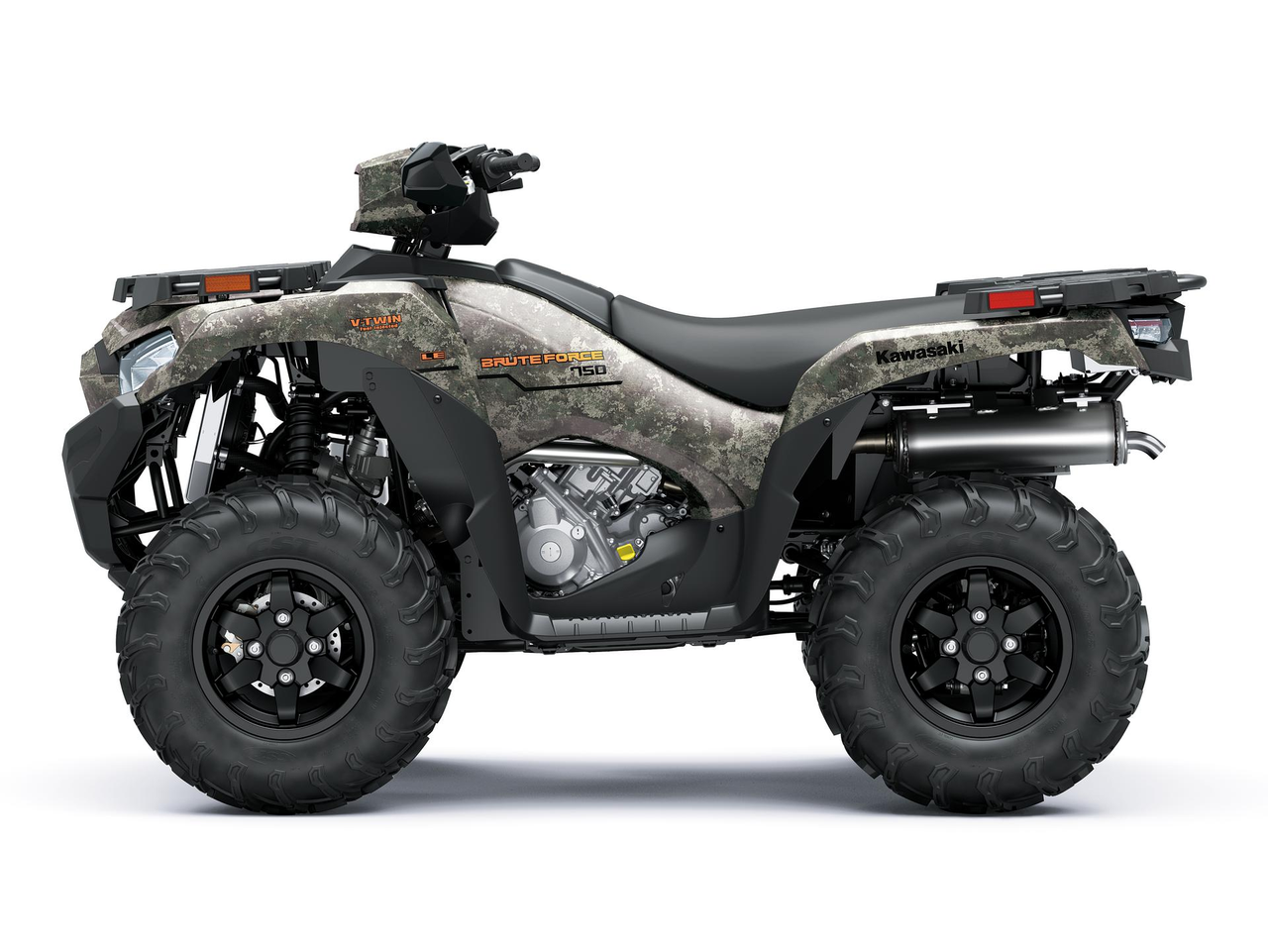 Next-level looks make it clear that the revised BRUTE FORCE 750 is a modern ATV. Styling touches like new exterior panels and covers are accented by LED lighting and a prominent 3D “Kawasaki” emblem that brings the design together. The BRUTE FORCE 750 looks just as good parked in the driveway as it does riding along a muddy trail.