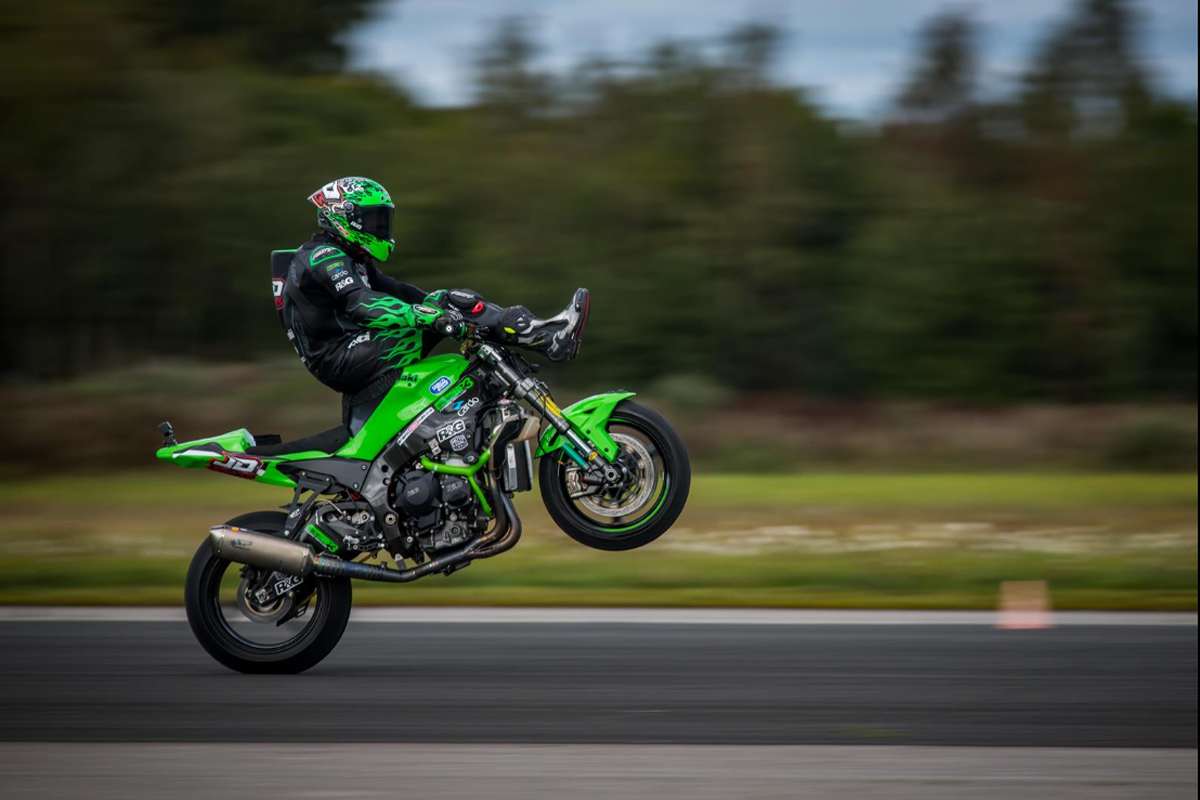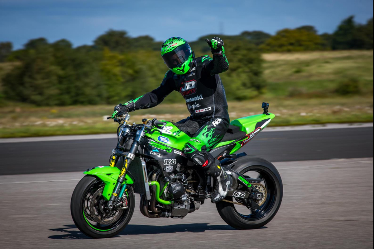 Having already broken several world records, including last year when he used a supercharged Kawasaki Ninja H2 SX to set a record-breaking 159.52mph record for skiing behind a bike, County Durham’s JD Stunts broke another last weekend, this time for the world’s fastest highchair wheelie. This stunt involves wheelieing a bike while placing both feet over the handlebars and sitting on the tank.