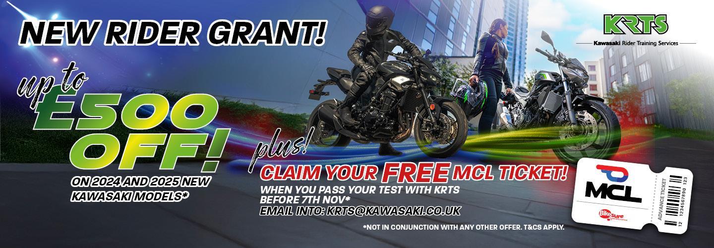 Kawasaki is helping new riders discover their dream machine with the launch of the ‘New Rider Grant’. Open to all motorcyclists who have passed their test in the last 12 months, the reward gives up to £500 off a range of Kawasaki machines.