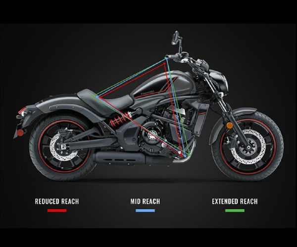 - 3: Ergo-Fit The Easy Reach seat moves you forward ± 50mm Additionally, the slimmer tapered seat profile allows the rider to reach the ground better.
